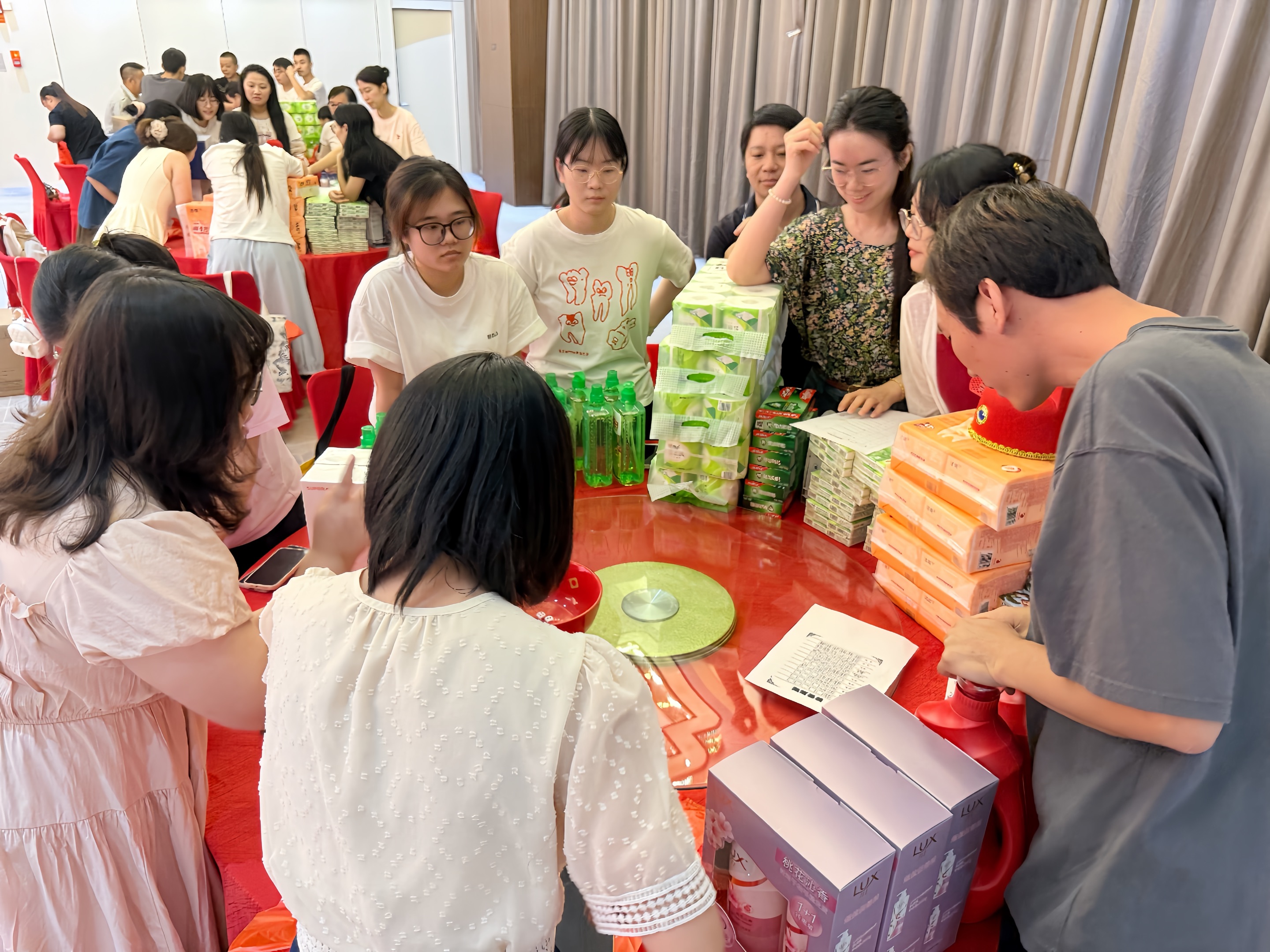 كانت مكان الحدث مجهزًا جيدًا منذ وقت مبكر. تم تزويد كل طاولة بصحون من البورسلين ونرد لألعاب "بو بينغ"، مع تكدس جوائز متنوعة بجانبها. ومع صيحة "ابدأ"، انتشر صوت نقر النرد الواضح بشكل مستمر. اجتمع الجميع حول الطاولات، يتناوبون على رمي النرد. تعالت الهتافات بلا توقف لـ "يي شيو" (أصغر فئة من الجوائز) و"إر جو" (ثاني أصغر فئة من الجوائز). ابتسم الموظفون الذين حصلوا على أرقام جيدة أثناء قيامهم بسحب جوائزهم، في حين انضم الآخرون الذين لم يحالفهم الحظ أيضًا إلى المرح، مطلقين الهتافات والمزاح معًا.